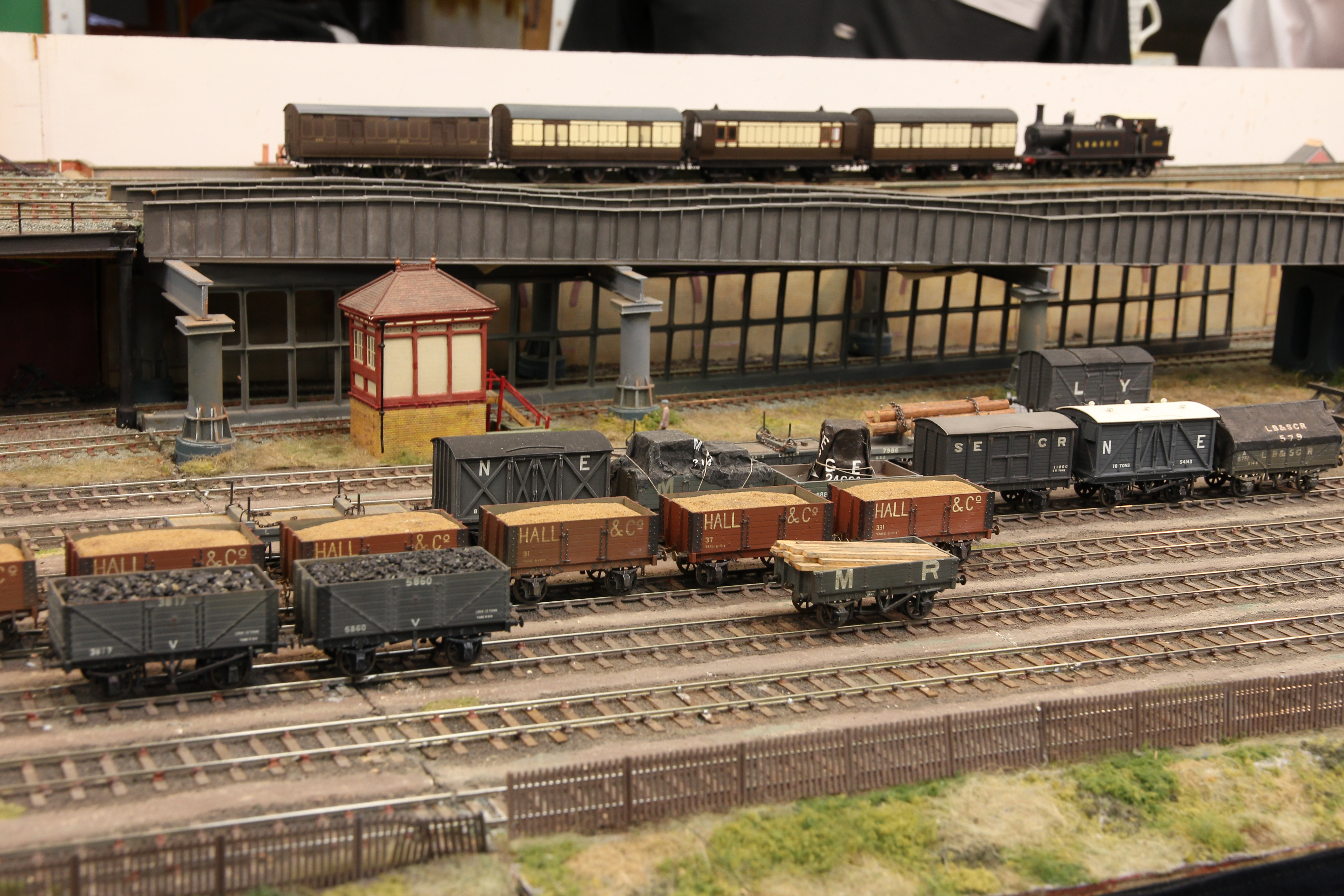 In this case, the layout was Barry Luck’s (with assistance of the Mid-Sussex AG of the S4 Society) Brighton Road. It was shown in the carriage repair shop at Horsted Keynes; so we were serenaded by the sound of the real thing (and the occasional burble of a Sulzer as they had a class 33 working too.
