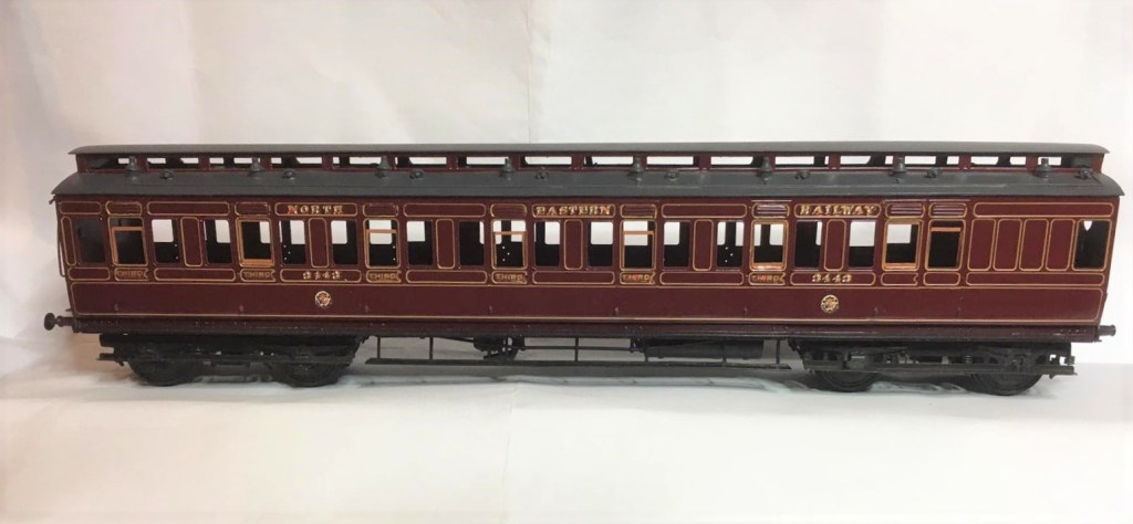 As the coaches were quite long lived, they went through many detailed changes. for anyoen who is contemplating building some, I would heartily recommend reading David Addyman’s notes on how he built his in the Scaleforu Forum https://www.scalefour.org/forum/viewtopic.php?f=39&t=7210&p=101662&hilit=ner+coaches#p101662 David’s coaches are modelled in the 1930s, so have different lighting arrangements, footsteps, bogie spring dampers and sides to the clerestories. Lots of things to be aware of if you are doing something similar.