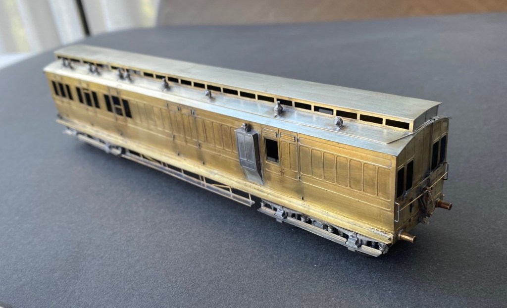 I completed a few personal upgrades to the kit in both this and the earlier autocoach. Chief of these is around the roof where I ditched the plastic roof and replaced it with rolled brass. This was formed of 0.25mm to give it a tangible depth, which makes its rolling a fair challenge. Add to this, I elected to cut out the portion below the clerestory, so that it was a clerestory! By the time I had added the gas lines and the various gas lamps and ventilators, I reckon there is around 20 hours in making the roof alone!