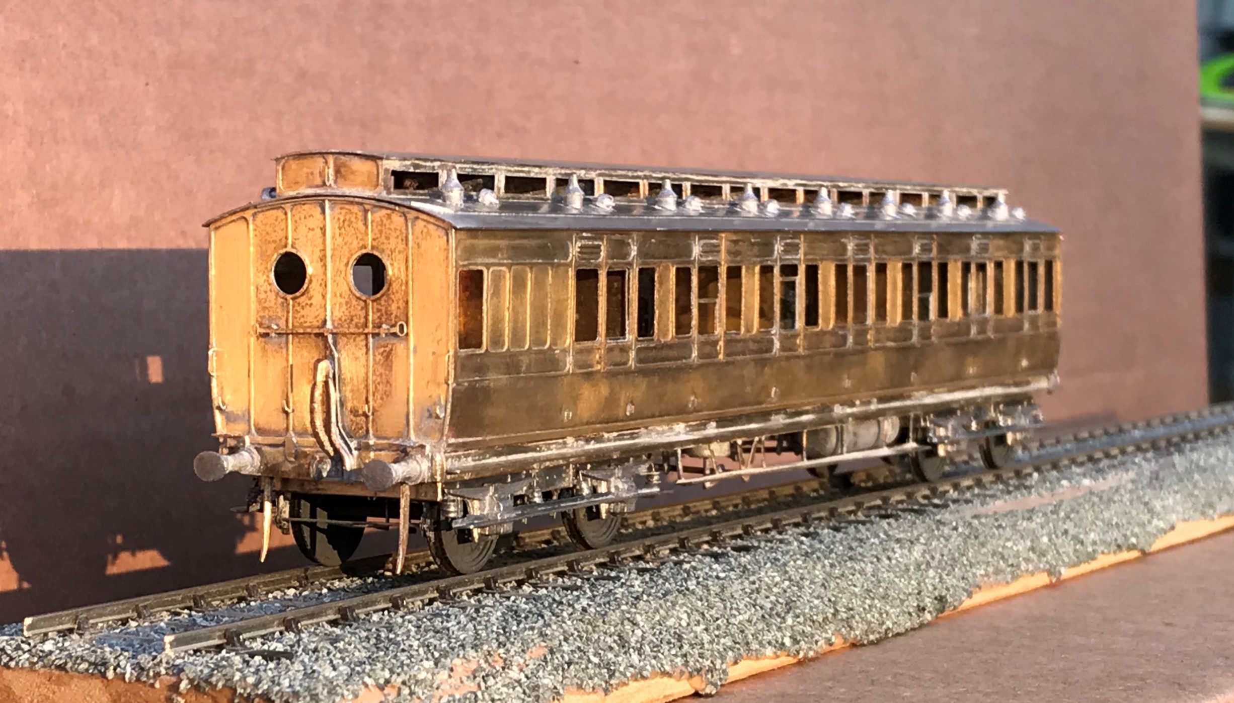I completed a few personal upgrades to the kit in both this and the earlier autocoach. Chief of these is around the roof where I ditched the plastic roof and replaced it with rolled brass. This was formed of 0.25mm to give it a tangible depth, which makes its rolling a fair challenge. Add to this, I elected to cut out the portion below the clerestory, so that it was a clerestory! By the time I had added the gas lines and the various gas lamps and ventilators, I reckon there is around 20 hours in making the roof alone!