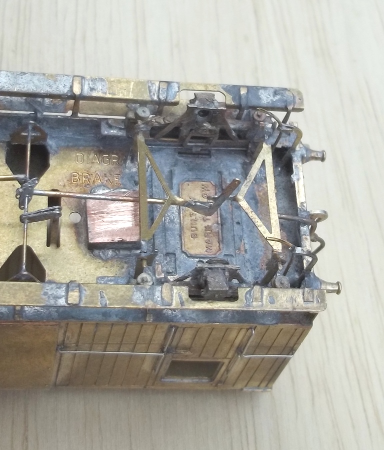 The other highland brake van I weathered was the diagram 38 brake van. This originates from a Microrail kit and may well still be available from David Geen occasionally at shows as he does own the rights to the artwork. I have modified this with the early pattern roof look outs. These allowed the guard to look over the train around the twisting curves that characterised parts of the Highland’s system. However, there were complaints about whacked heads as the guards came up and down the steps to look onto the lookouts and as a result they were modified with approach cutouts on the roof – take a look at the Lochgorm’s page above to see an example.