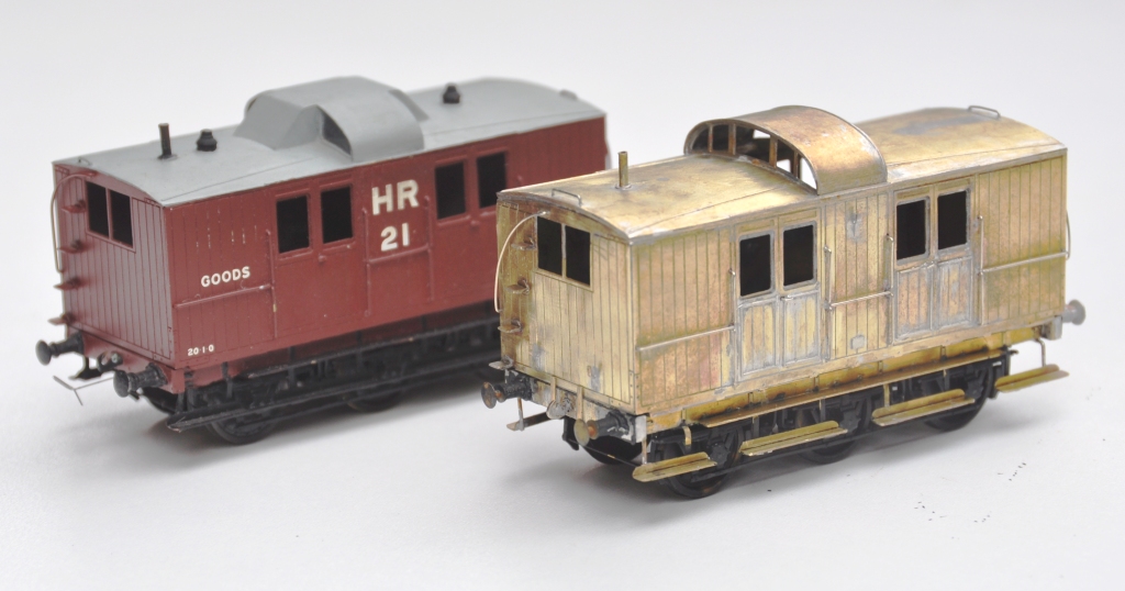 The components went together easily and do give a very different feel to the Microrail kit as intended. I also made a number of other adjustments, to the footboards and also the panelling, to make the model both different and authentic. The latter, the beaded panelling, is a right pain in the whatsit and took much longer than any other element of the assembly – so don’t to it unless really want to! And this is what it looks like next to the kit as originally intended, with the later style lookout.