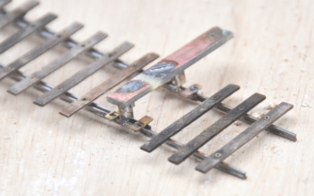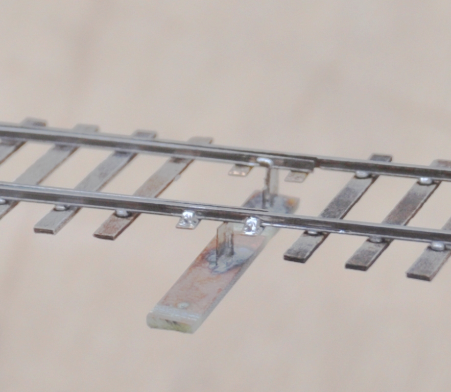 You will see that relatively little of the TOU is exposed (and when it is painted it blend away further). Equally it is much more durable than most of the other options out there because the switchblade is held by both a wire strip but also to some brass strip that is tight to the underside of both the switchrail and the switchblade. By installing this strip in this location, the switchblade is held in a vertical plane much better than other solutions. I think this leads to better running.