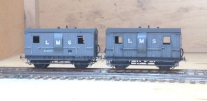 First up is a pair of horseboxes. On the right is my HR version based on a Microrail kit – still in need of some glazing. On the left is the Caledonian’s equivalent based on a kit from by Spratt & Winkle. Both are in their pre-group livery as can be seen. As such stock was used in passenger trains, I have sought to give them an aged but largely cleaned feel – with the dirt largely present around ironwork and difficult to clean spots.