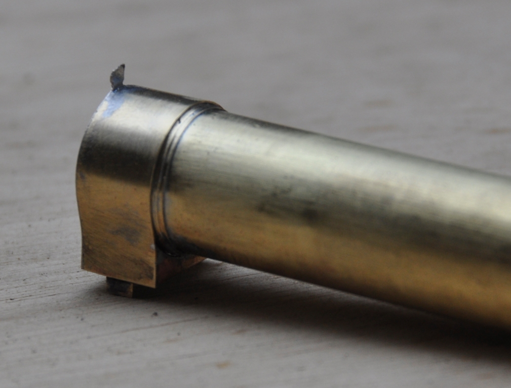 The downside of using tube as a boiler is that boiler bands need to be considered. I have provided these in the kit (again using the strap and eye technique). I chose to fit them on this kit although in practise I think any metal boiler band is too thick and would probably have done it with a transfer sheet if this was not a test build (done prior to painting, the thickness of the transfer is enough to show through the paint on what will be a single colour to the boiler).